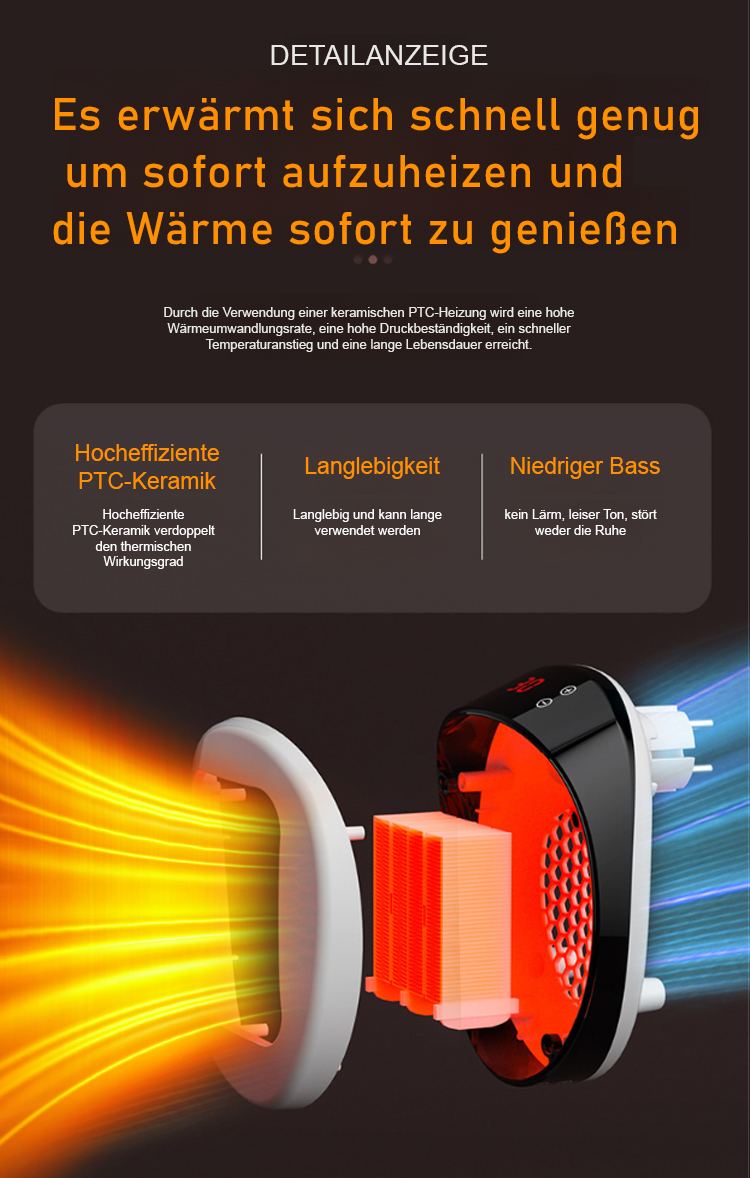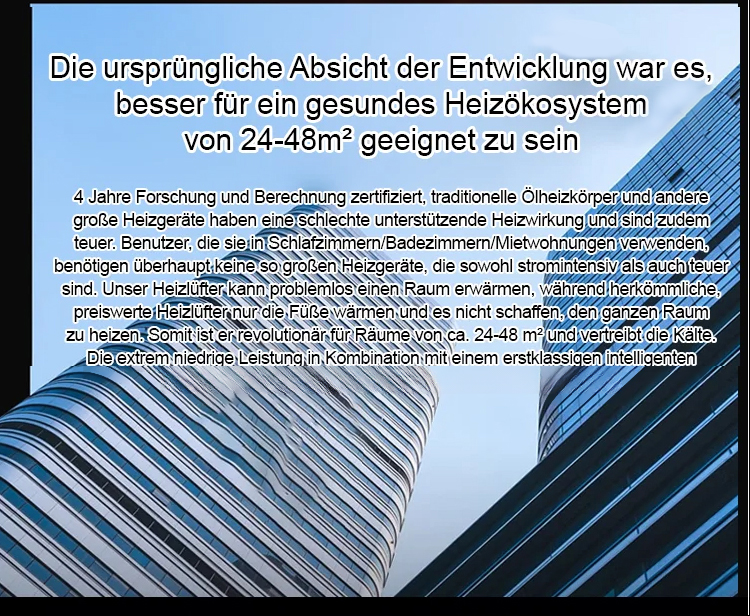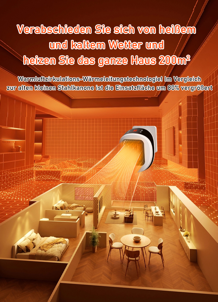 Führende Energiespartechnologie, 800 W Leistung, verbraucht in 7 Tagen nur 1 Kilowattstunde, kostet weniger als 1 Euro Strom und kann dennoch einen 120 Quadratmeter großen Raum innerhalb von 3 Sekunden beheizen.