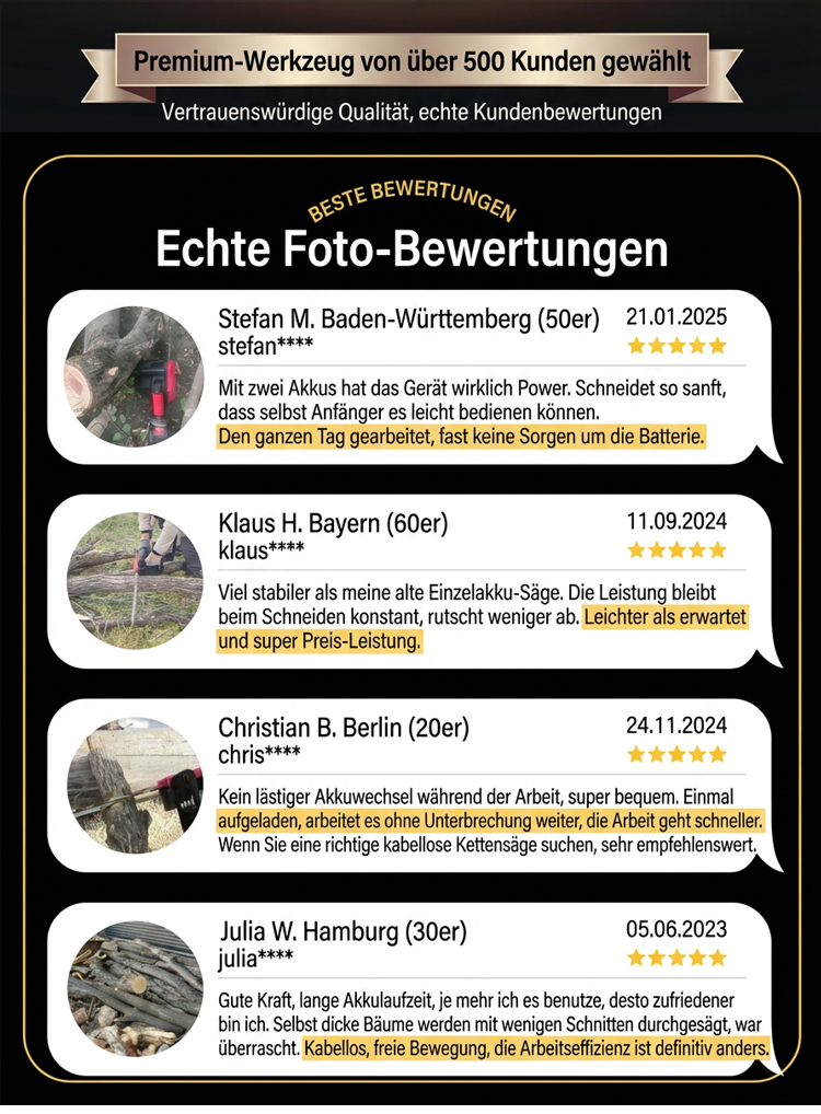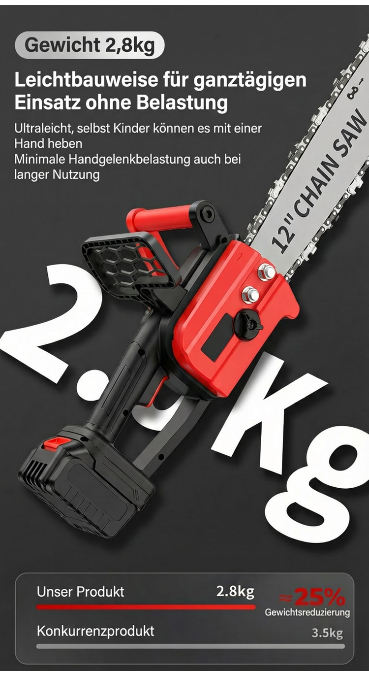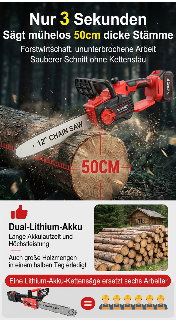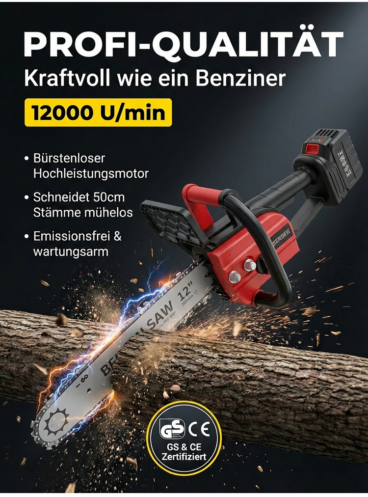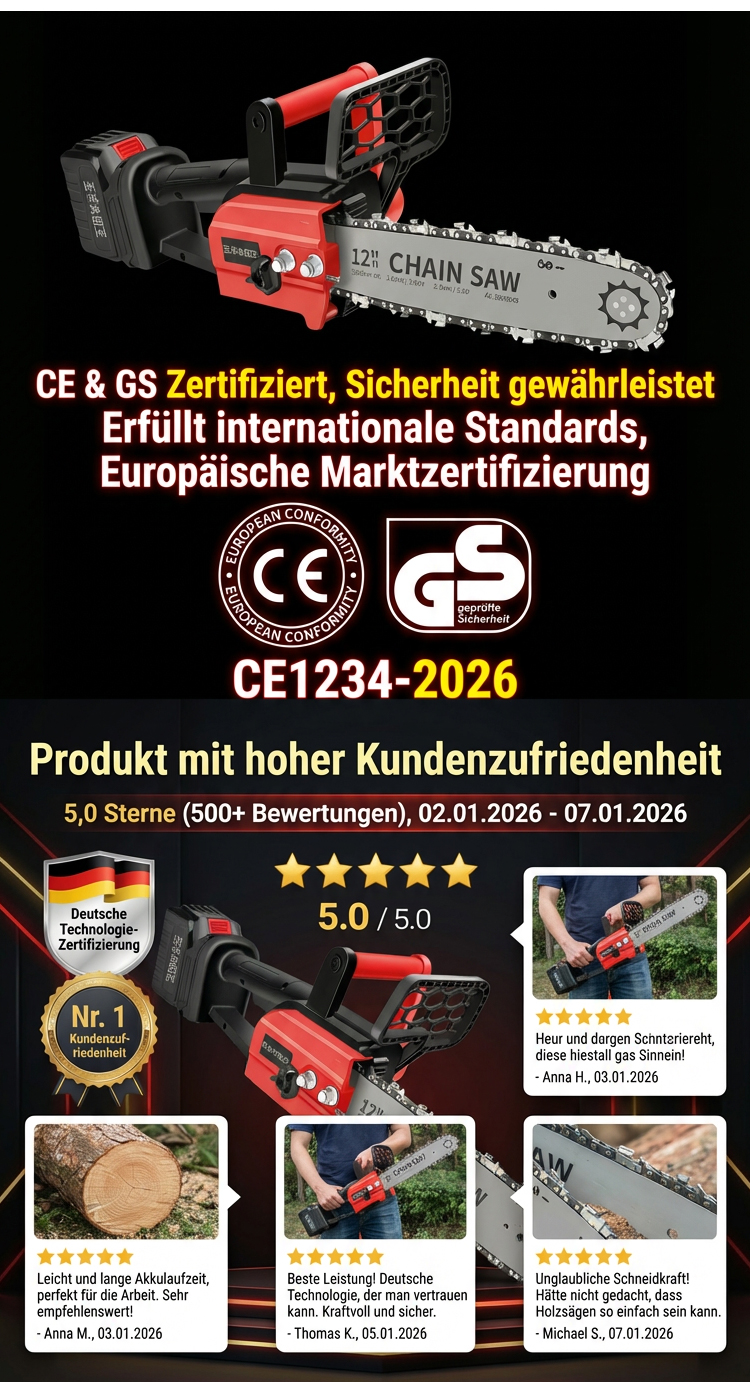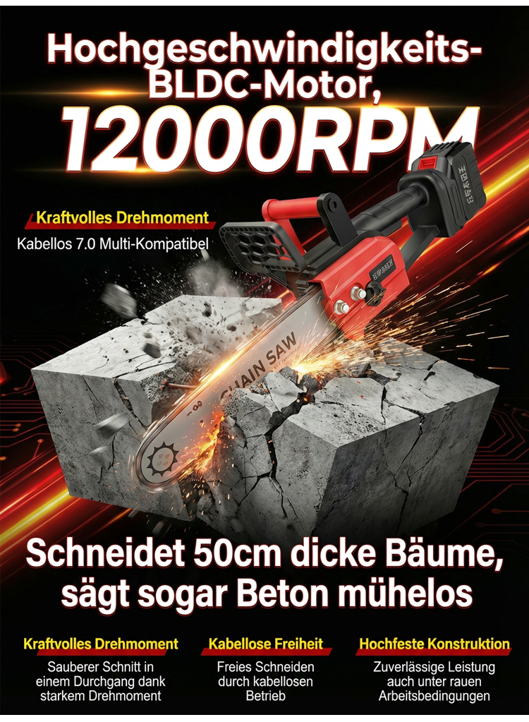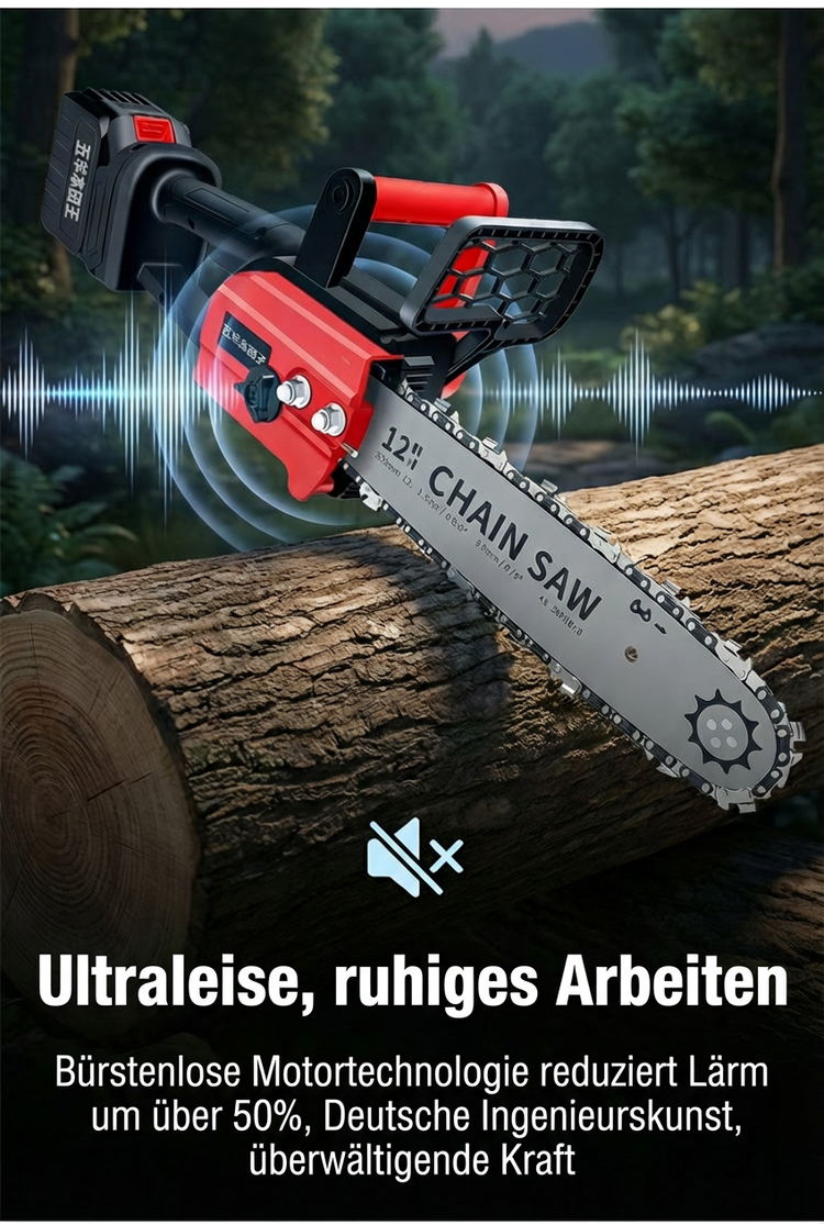 Profi Akku-Kettensäge 2026 | Bürstenloser Motor | TÜV-Zertifiziert 🌳 Ultraleicht & Leistungsstark | 10 Jahre Garantie 🔋