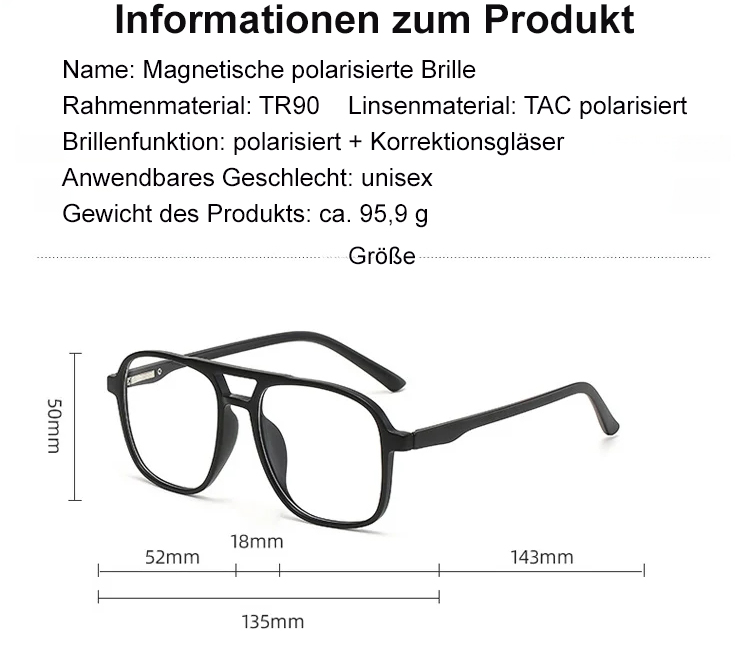 1 x Optischer Rahmen + 5Pcs magnetischer Sonnenbrillenclip.