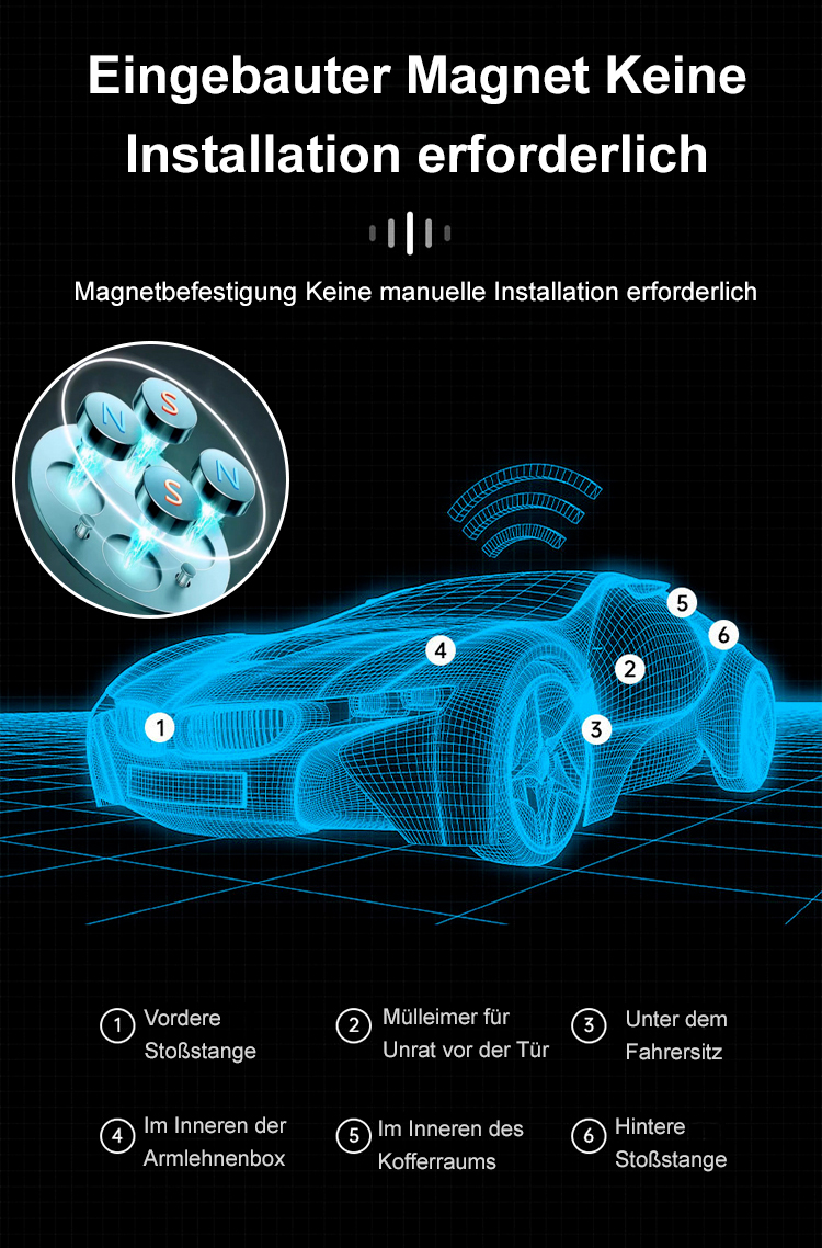 Einfacher geht es nicht: Auspacken, anheften, fertig! Dank der hocheffizienten Polymer-Batterie hält der Tracker ein ganzes Jahr mit nur einer Ladung. Ob für die Fahrzeugflotte, den Schutz Ihrer Liebsten oder Haustiere – verlassen Sie sich auf deutsche Präzision.